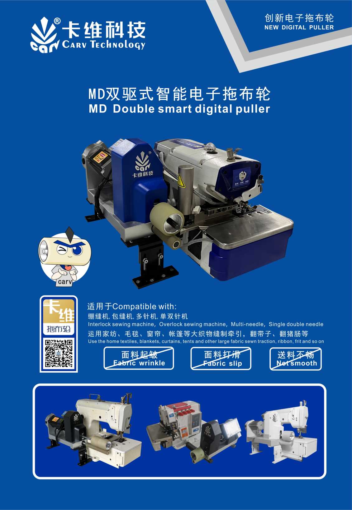 宁波卡维CARV作为缝纫机电子拖轮的引领与创新国家高新企业,历经两年多的研发和生产,推出了无需加油,结构简单,兼容性强大和安装极便的MD双驱动子拖轮,解决了机械拖轮的天生问题,卡维MD双驱动电子拖轮同步带三年免费更换政策,让用户无后顾之忧。